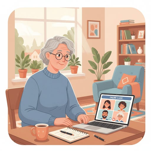 Pick something you’re genuinely curious about, not what you think you should learn. The technology barrier? Smaller than you think. After taking online courses, 57 percent of seniors aged 55 and older rated their confidence with digital technology as very high. You learn the platform while you learn the subject. Two skills, one effort.